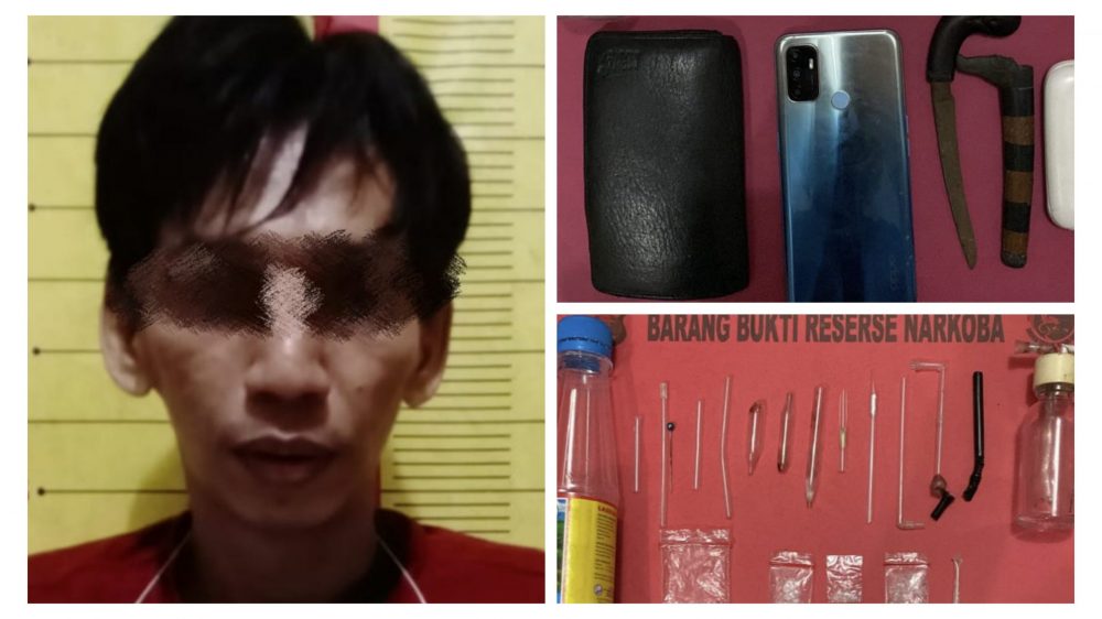Sambungnya, adapun barang bukti yang ditemukan pihaknya berupa 3 plastik klip berisikan kristal putih diduga sabu seberat 1.41 gram, 2 alat hisap, 9 sedotan plastik, 3 kaca pirek, 2 handphone, dompet warna hitam, jarum pentol dan sebilah pisau badik.